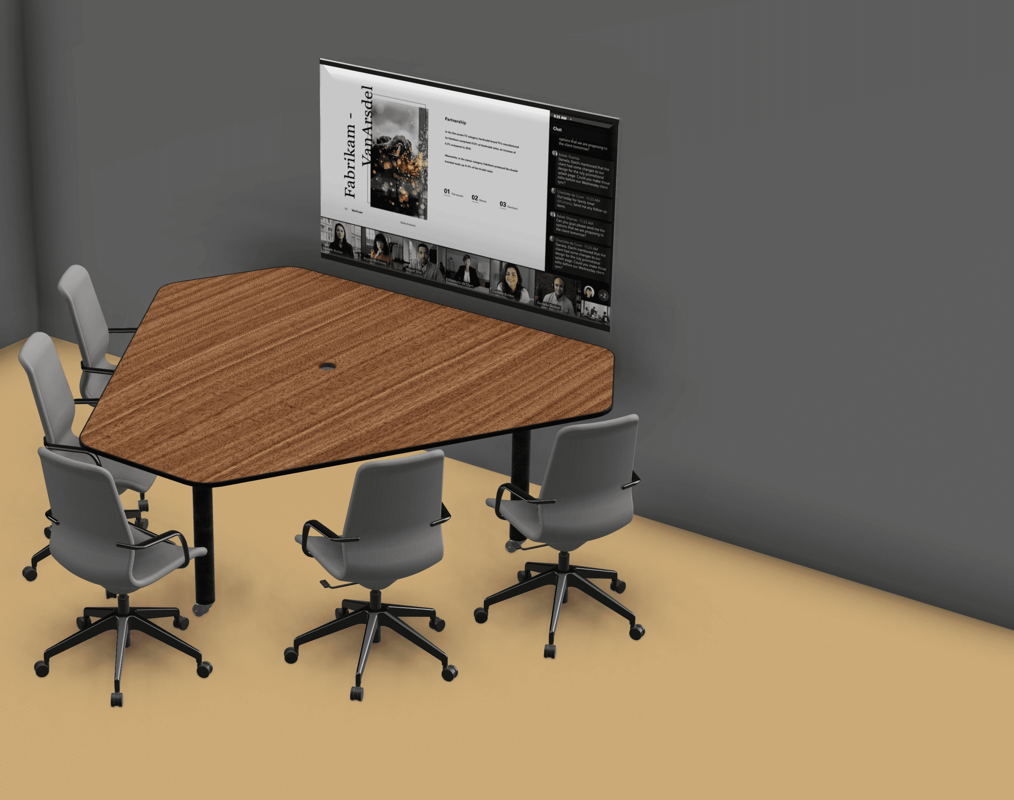 For face-to-face scenarios where you don’t need to include the screen, roll the table away from the wall, pull up some chairs and seat up to 9 people comfortably around the table.